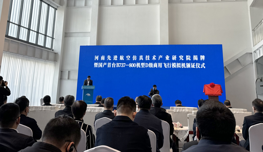 11月26日,河南先進(jìn)航空仿真技術(shù)產(chǎn)業(yè)研究院揭牌暨國(guó)產(chǎn)首臺(tái)B737-800機(jī)型D級(jí)商用飛行模擬機(jī)頒證儀式在河南航投航空培訓(xùn)中心舉行。省委書記樓陽(yáng)生出席并講話。樓陽(yáng)生為河南先進(jìn)航空仿真技術(shù)產(chǎn)業(yè)研究院揭牌。中國(guó)工程院院士趙沁平受聘擔(dān)任研究院專家技術(shù)委員會(huì)主任。中國(guó)商用飛機(jī)有限責(zé)任公司黨委書記、董事長(zhǎng)賀東風(fēng),省領(lǐng)導(dǎo)孫守剛、陳星、安偉、劉尚進(jìn)出席。
